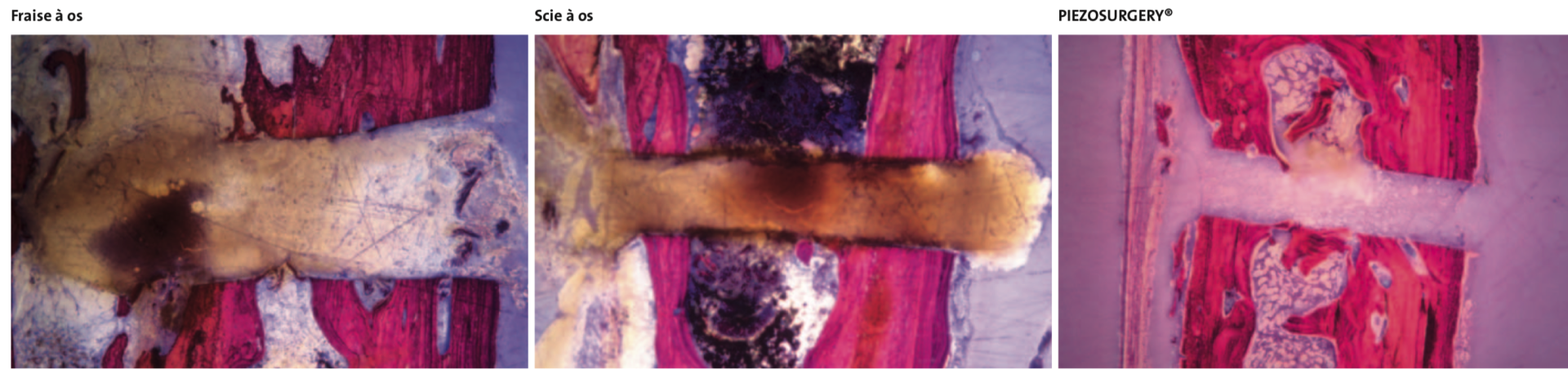 Grâce à la coupe sélective des ultrasons, qui est active sur les tissus durs (os et dents) et inactive sur les tissus mous (vaisseaux, nerfs et membranes), la sécurité du geste chirurgical est devenue maximale.