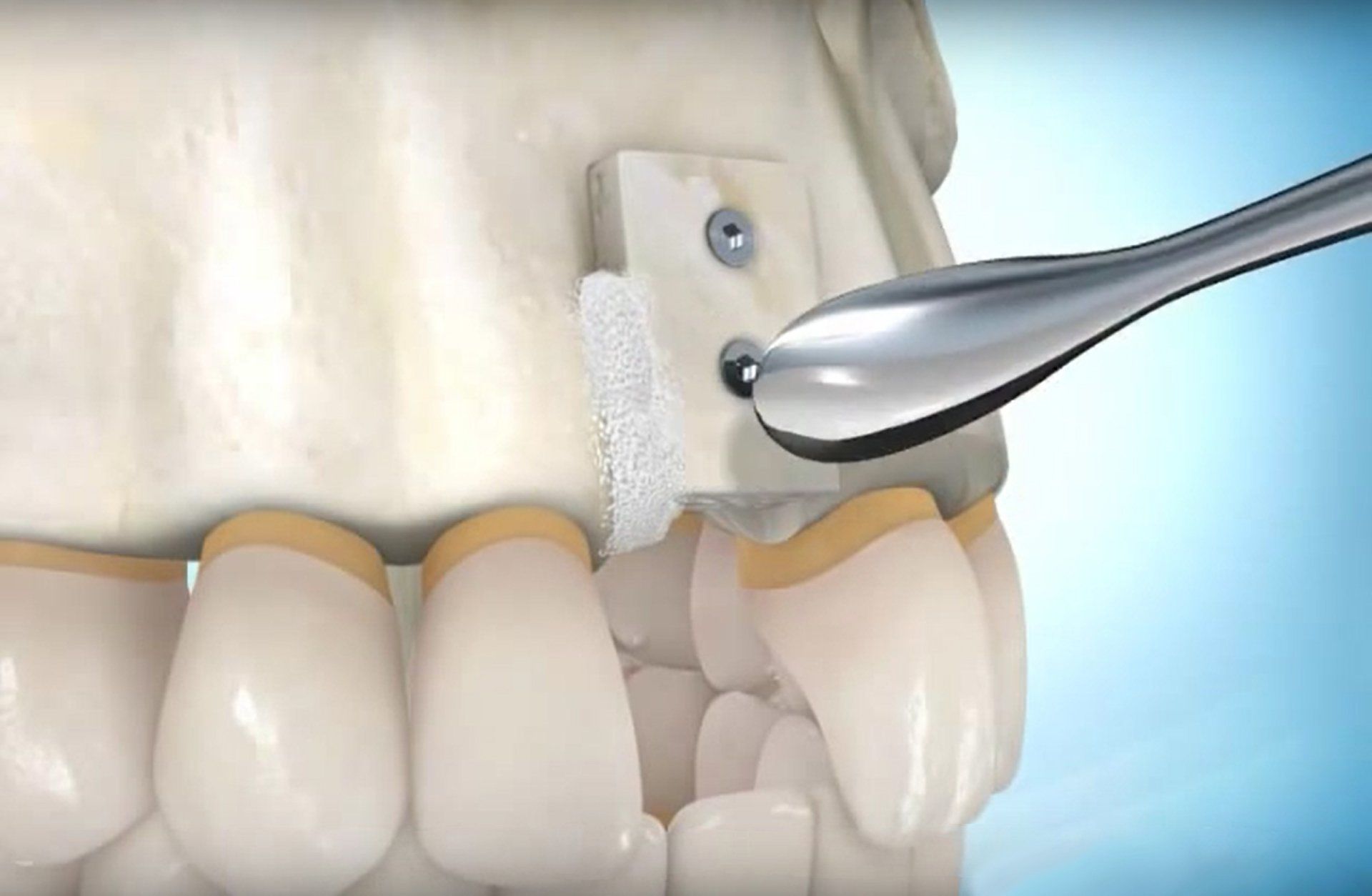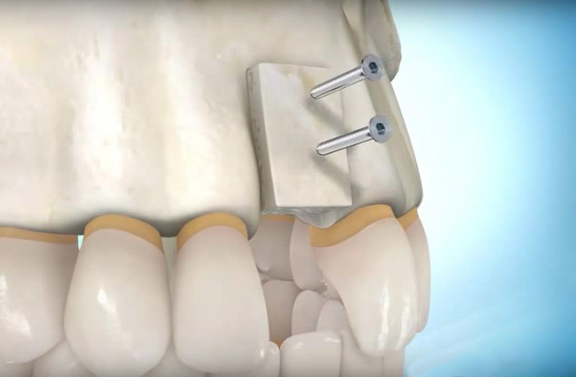 Pour cela nous prenons un bloc osseux allogénique (donneur humain vivant traité) fourni par la société BIOBANK. Contrairement à la technique traditionnelle, il n’y a pas de prélèvement dans la bouche du patient et donc plus aucunes suites opératoires au niveaux d’un quelconque site donneur ( douleurs, gonflement, hématome, perte de sensibilité …). De plus le temps d’intervention est quasiment divisé par deux, ce qui diminue grandement les suites opératoires au niveau du site receveur (gonflement, douleurs, hématome).